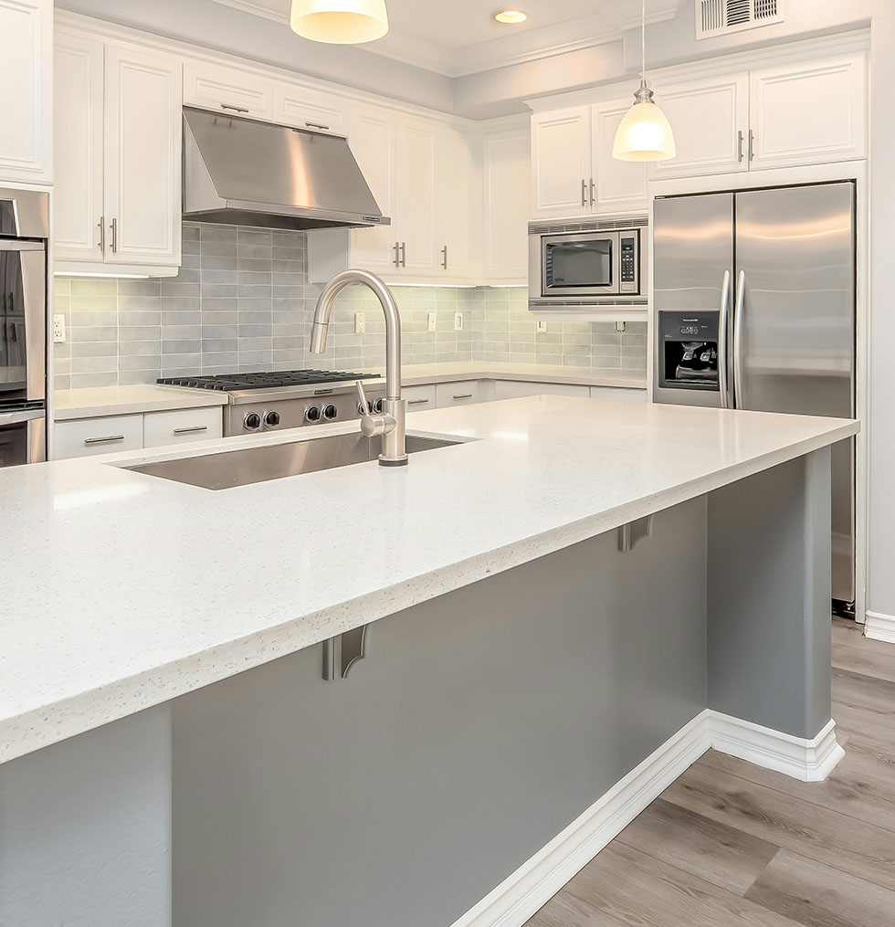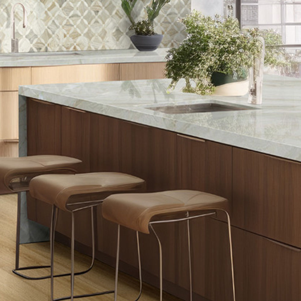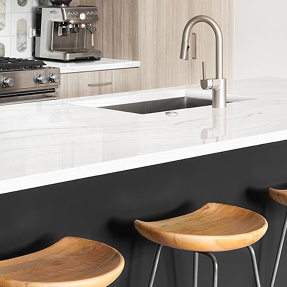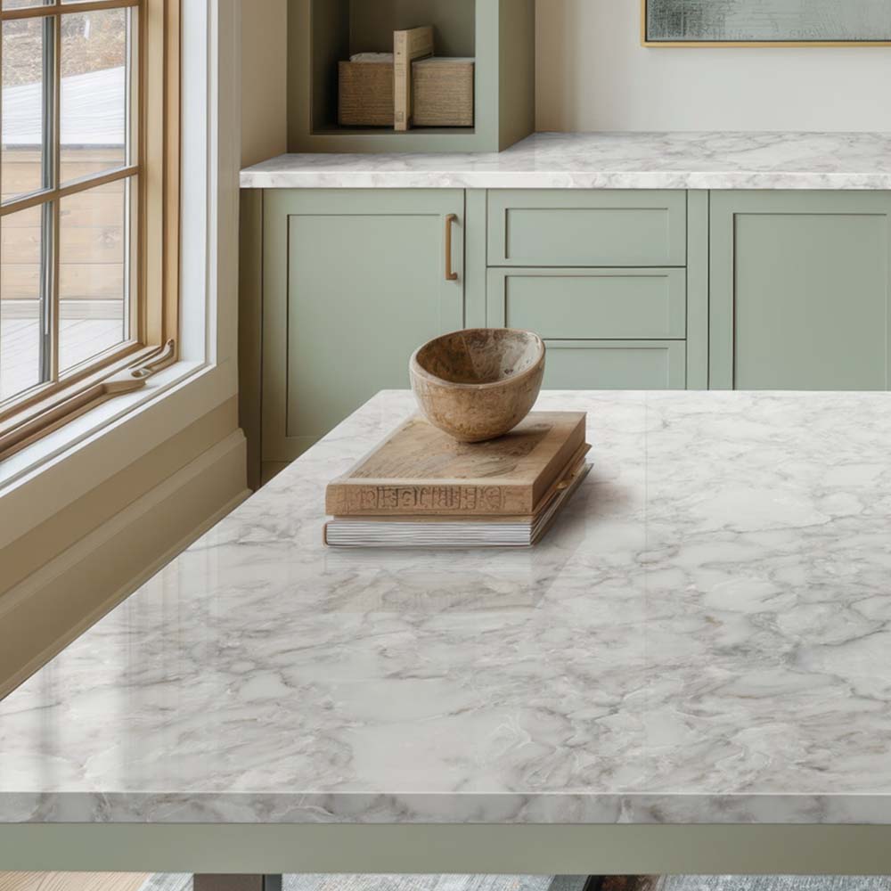 Discover a wide selection of kitchen and bathroom countertops at Michael James Building Supply. Our offerings include premium surfaces such as quartz, porcelain, quartzite, granite, and marble—materials known for their beauty, strength, and lasting performance. We also carry prefabricated countertop options with matching backsplashes and vanity tops, along with recycled engineered slabs for eco-friendly design.
