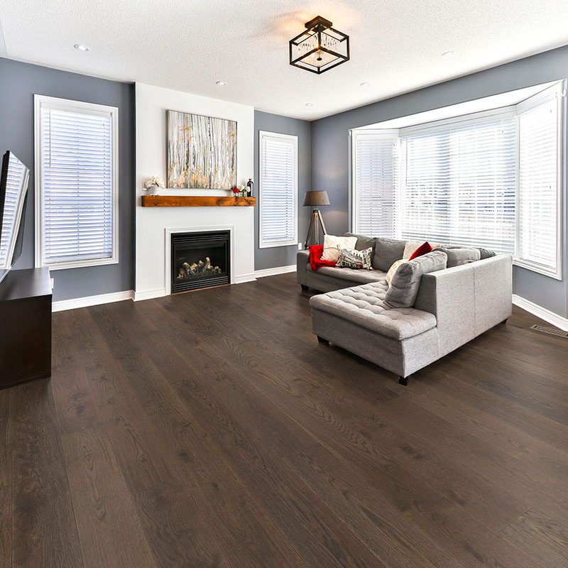 An engineered wood floor is constructed of layers of both hardwood and plywood, where solid hardwood is a solid piece of wood with no layers.