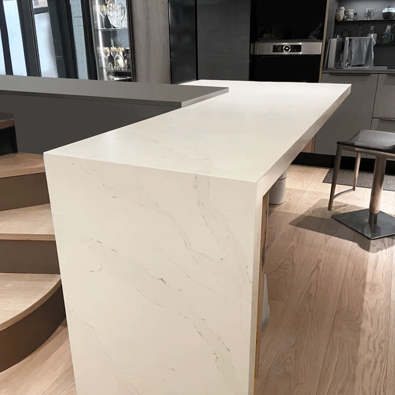 This quartz features a warm off-white to light beige base with very fine, delicate veining in light gray and subtle warm tones, offering a soft and elegant surface with minimal contrast.