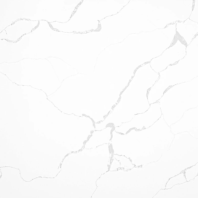 A bright white quartz with soft, flowing grey veining, offering a clean, elegant, and timeless marble-inspired look.