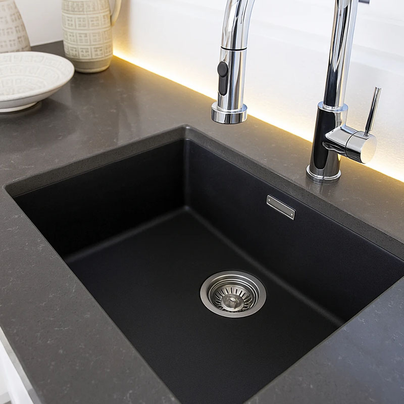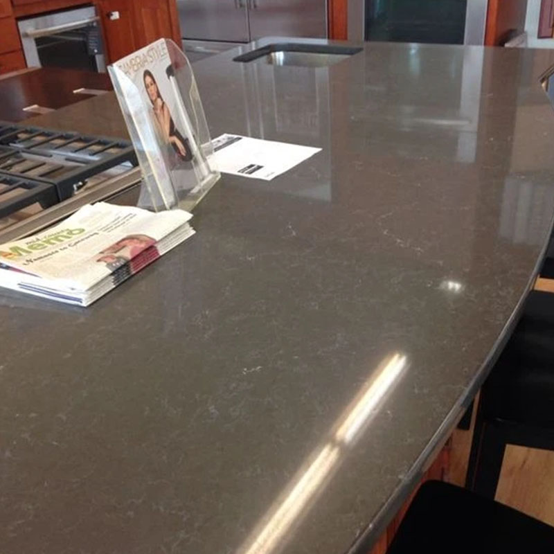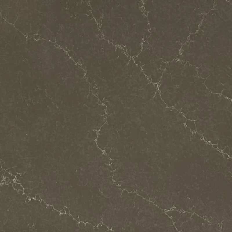 This quartz slab features a dark gray to black base dramatically contrasted by prominent, meandering white veining. The thin veins are dispersed across the surface, creating a sophisticated marble-like appearance with a high degree of visual impact.