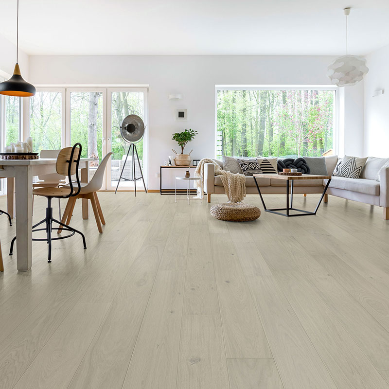An engineered wood floor is constructed of layers of both hardwood and plywood, where solid hardwood is a solid piece of wood with no layers.
