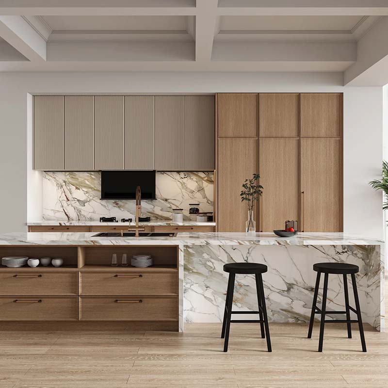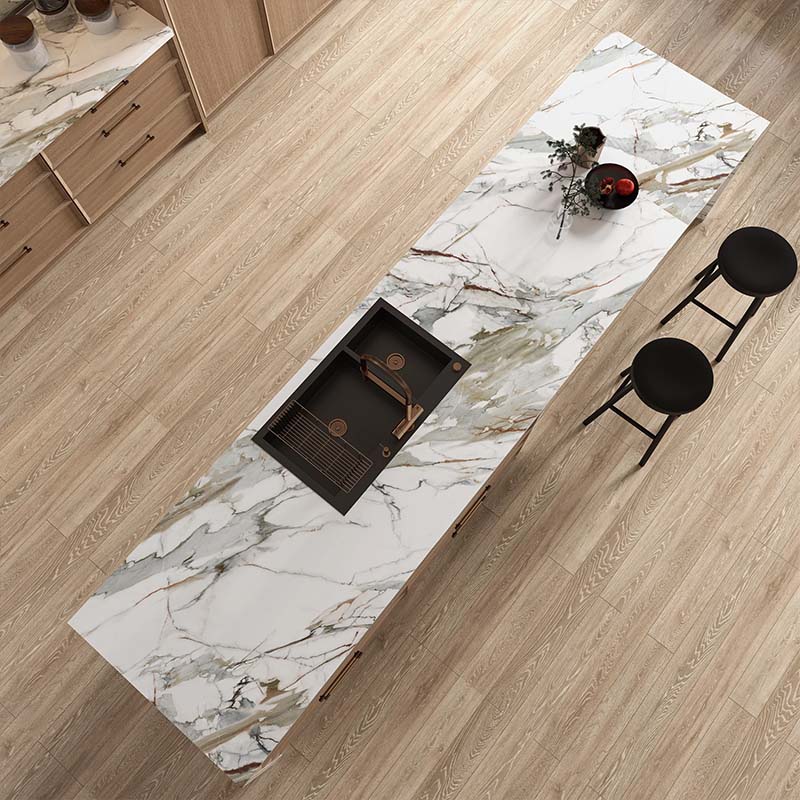 This quartz features bold, flowing veining inspired by the natural beauty of Macchia Vecchia, capturing the vivid patterns and rich color variations of the Italian mountains. Designed to honor the stone’s authentic character, it blends nature’s artistry with modern precision, offering a luxurious surface that feels both timeless and contemporary.