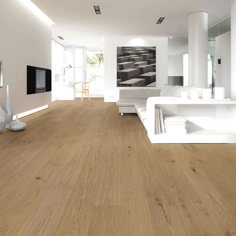 An engineered wood floor is constructed of layers of both hardwood and plywood, where solid hardwood is a solid piece of wood with no layers.