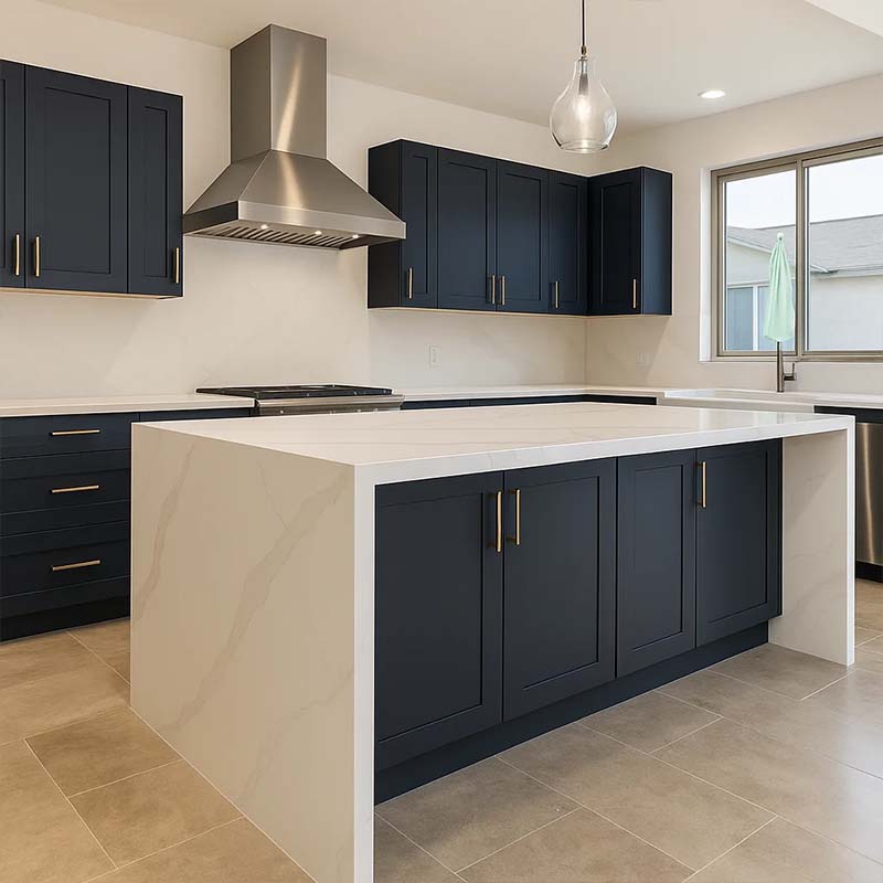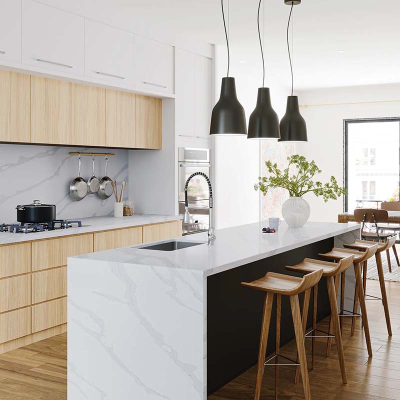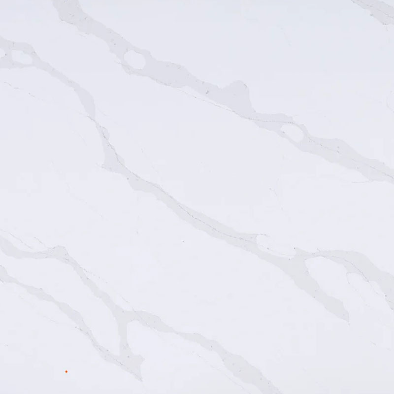 This quartz features a bright white to very light gray base with soft, subtle gray veining that flows delicately across the surface, creating a clean and elegant look with very low contrast.