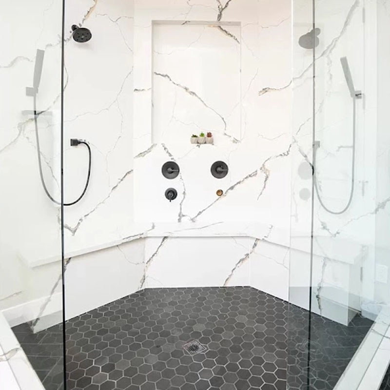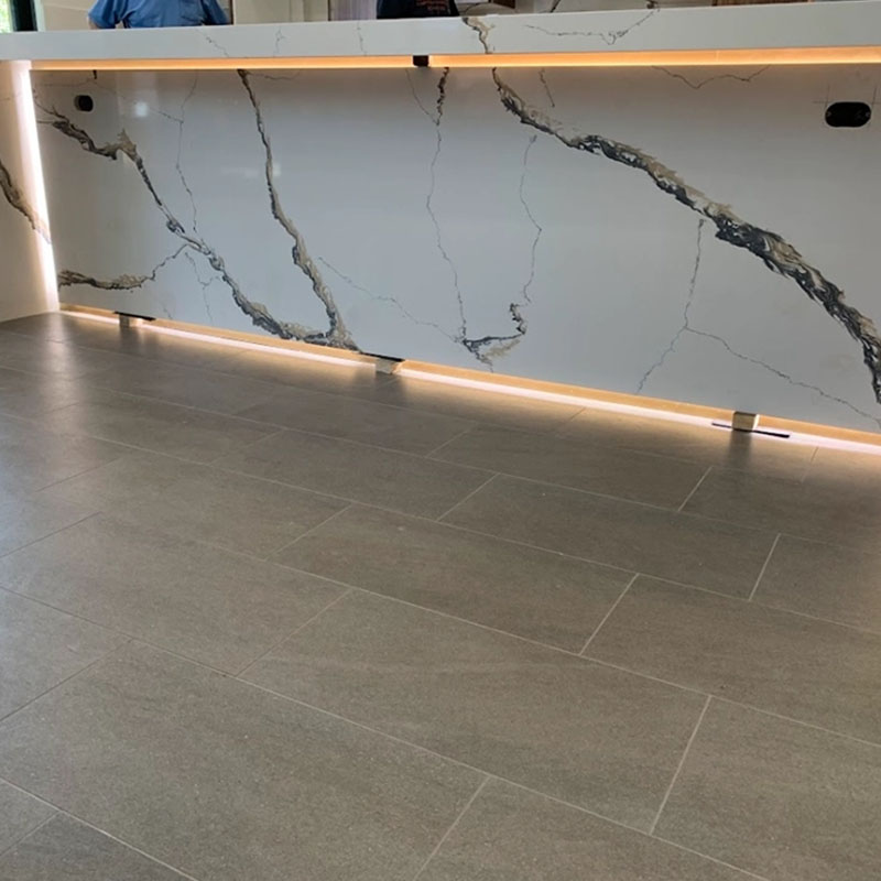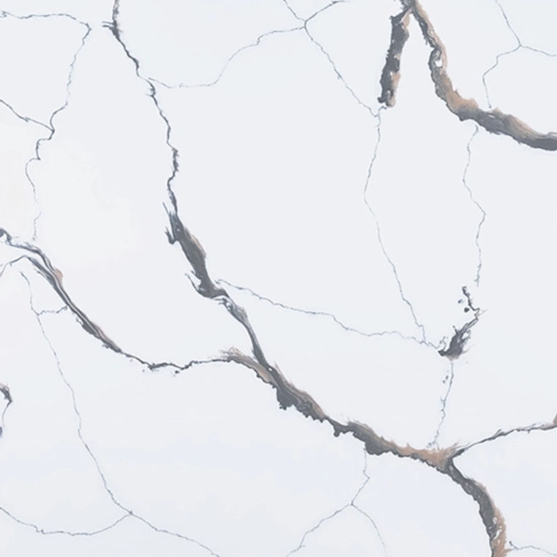 This quartz features a warm cream to light beige base with delicate gray veining accented by hints of gold or brown, creating a subtle crackle effect and an elegant, textured appearance with low to medium contrast.