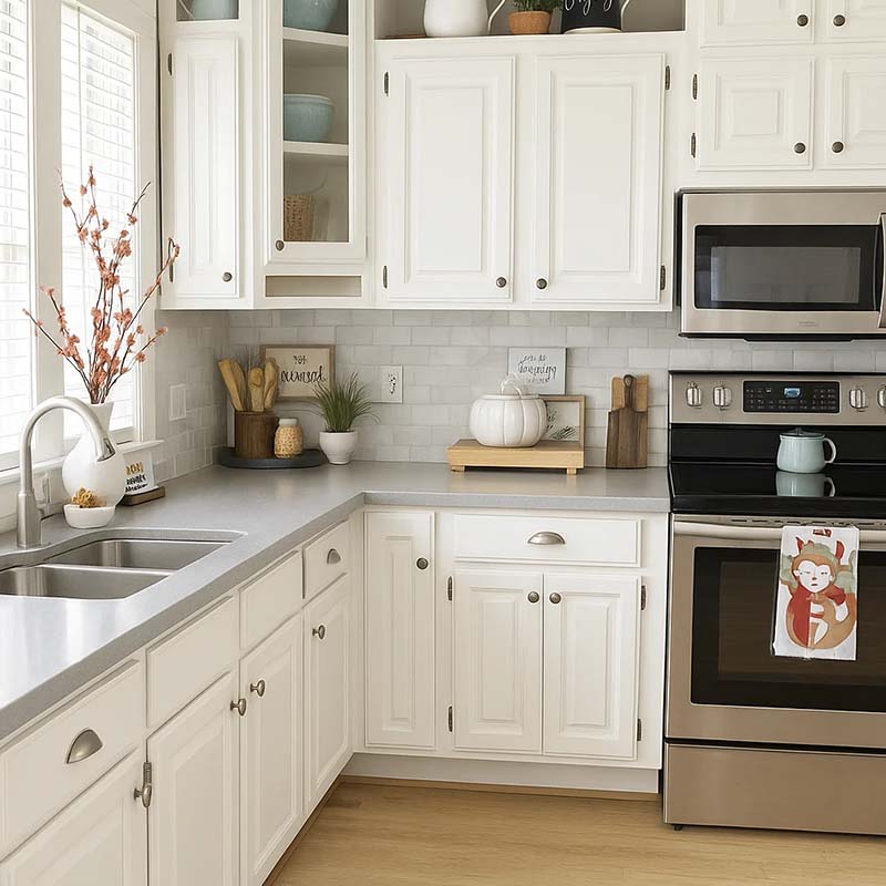 This quartz features a clean, solid light gray tone, providing a versatile and neutral backdrop for various design styles.