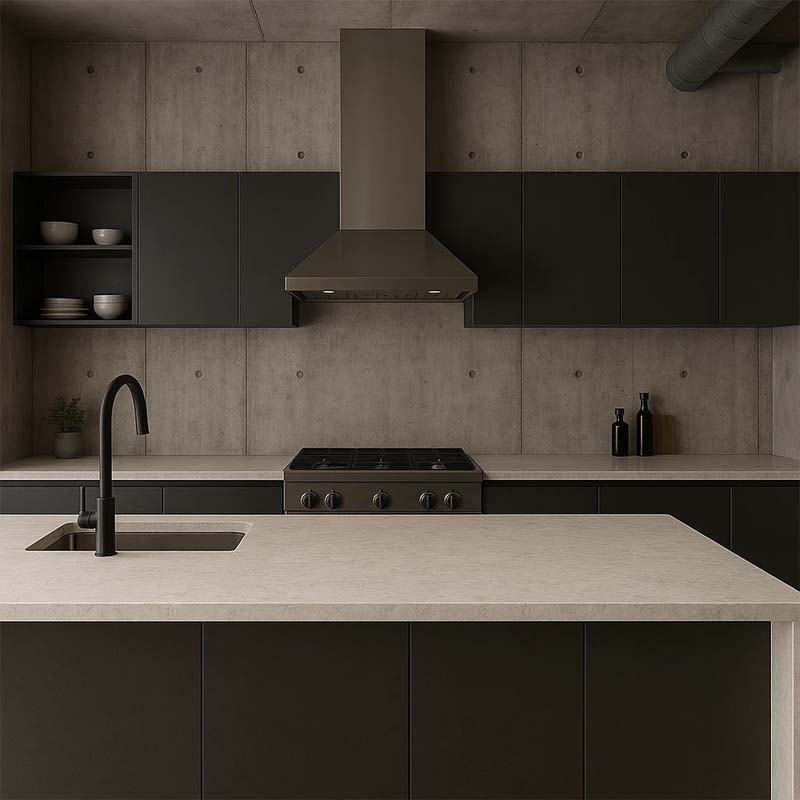This quartz features a light cream to off-white base with very subtle, thin veining, offering a soft, understated, and clean aesthetic with minimal contrast.