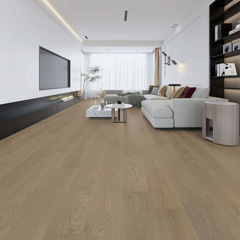 An engineered wood floor is constructed of layers of both hardwood and plywood, where solid hardwood is a solid piece of wood with no layers.