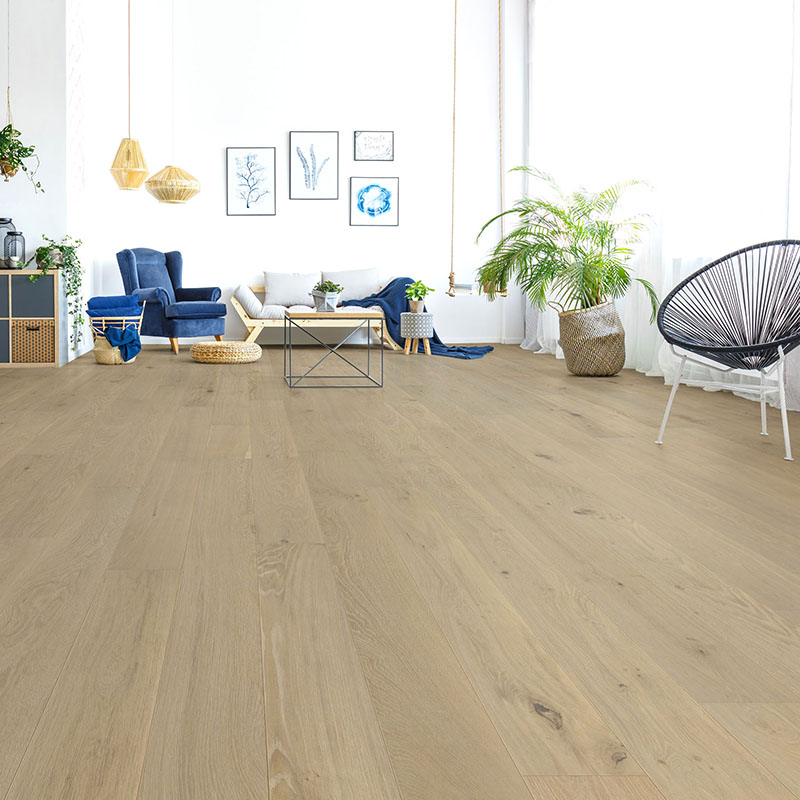 An engineered wood floor is constructed of layers of both hardwood and plywood, where solid hardwood is a solid piece of wood with no layers.